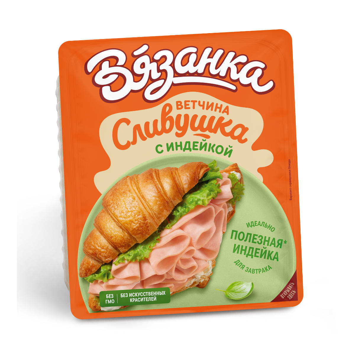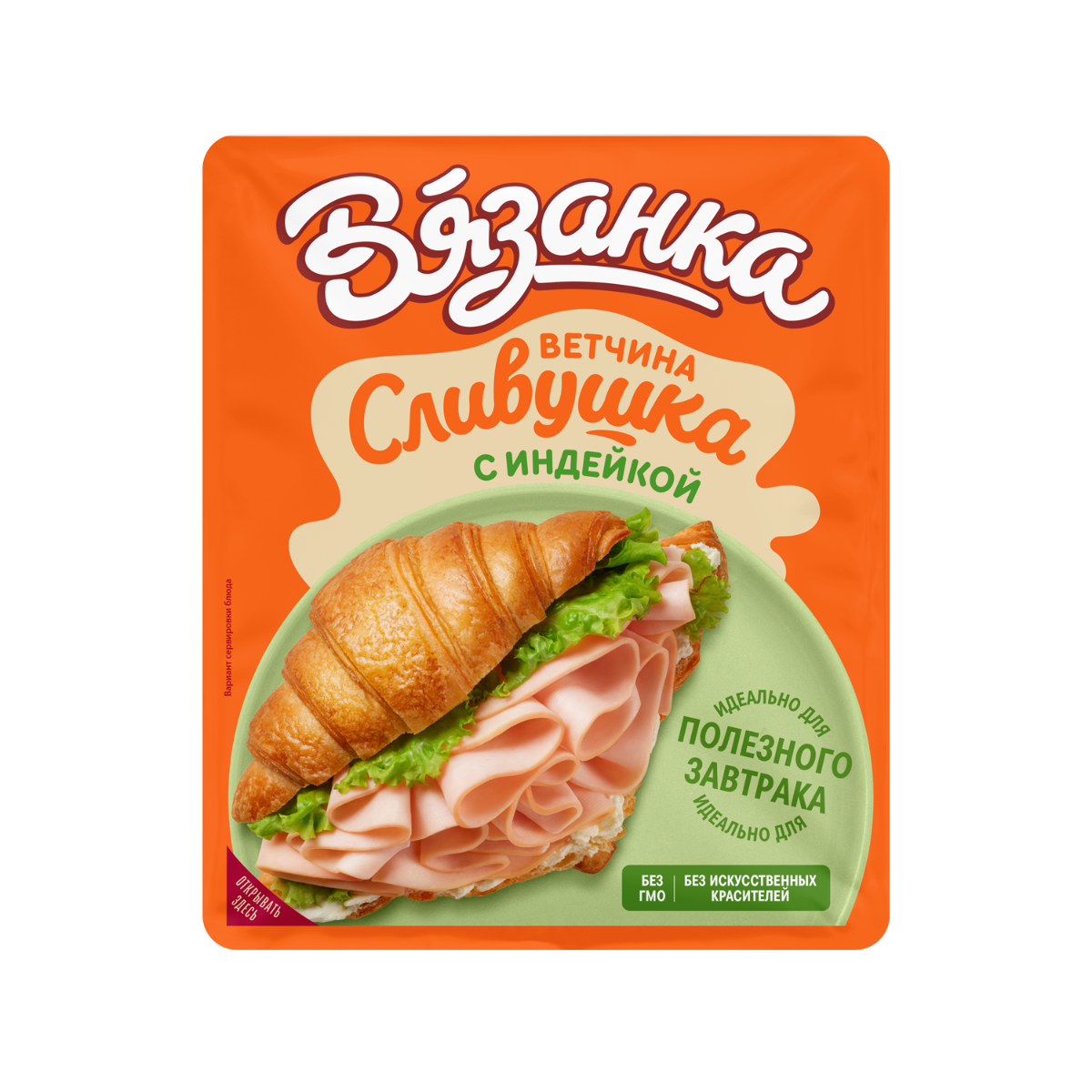 Ветчина «Сливушка с индейкой» с полезным филе индейки и нежным сливочным вкусом.